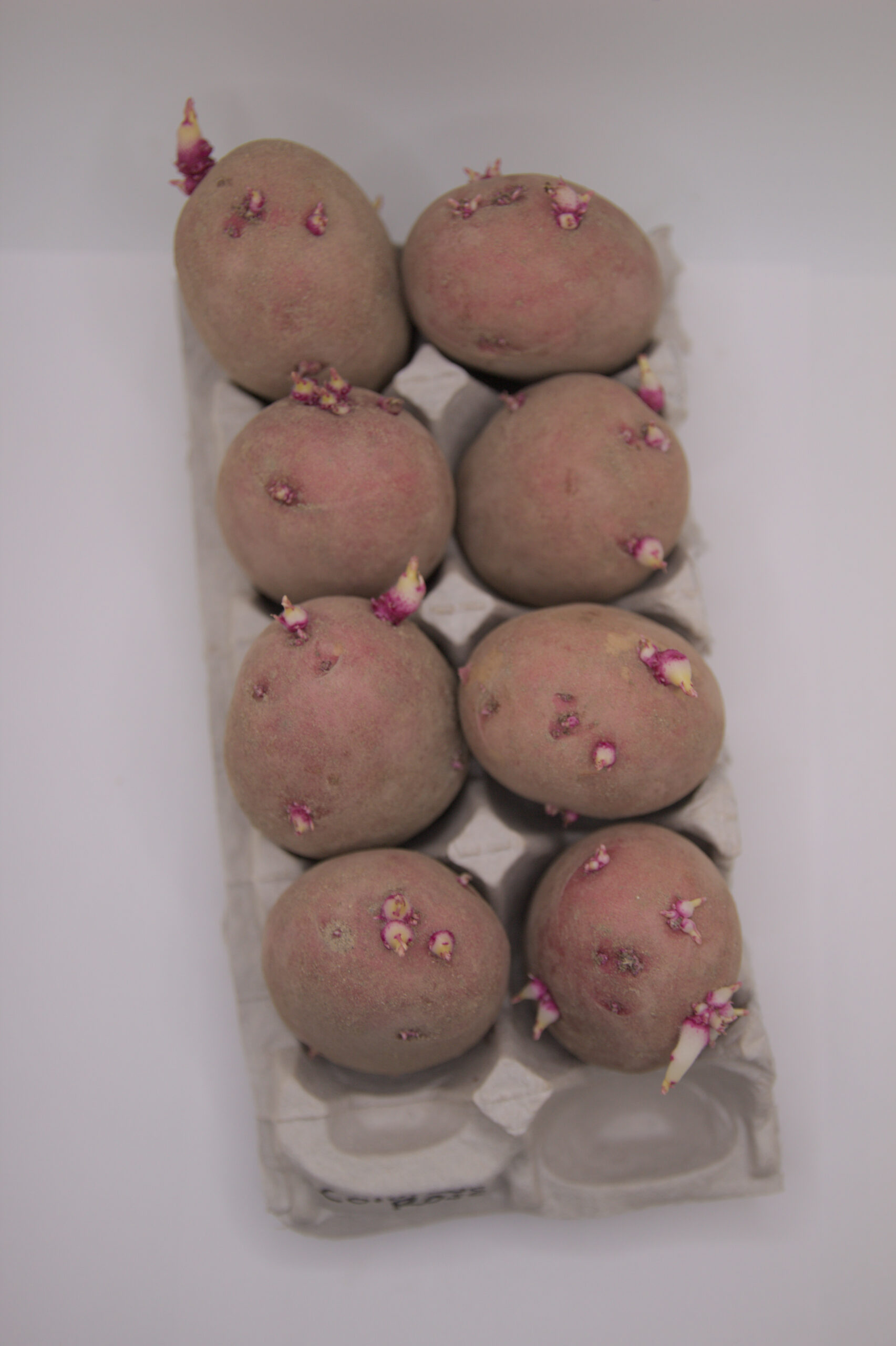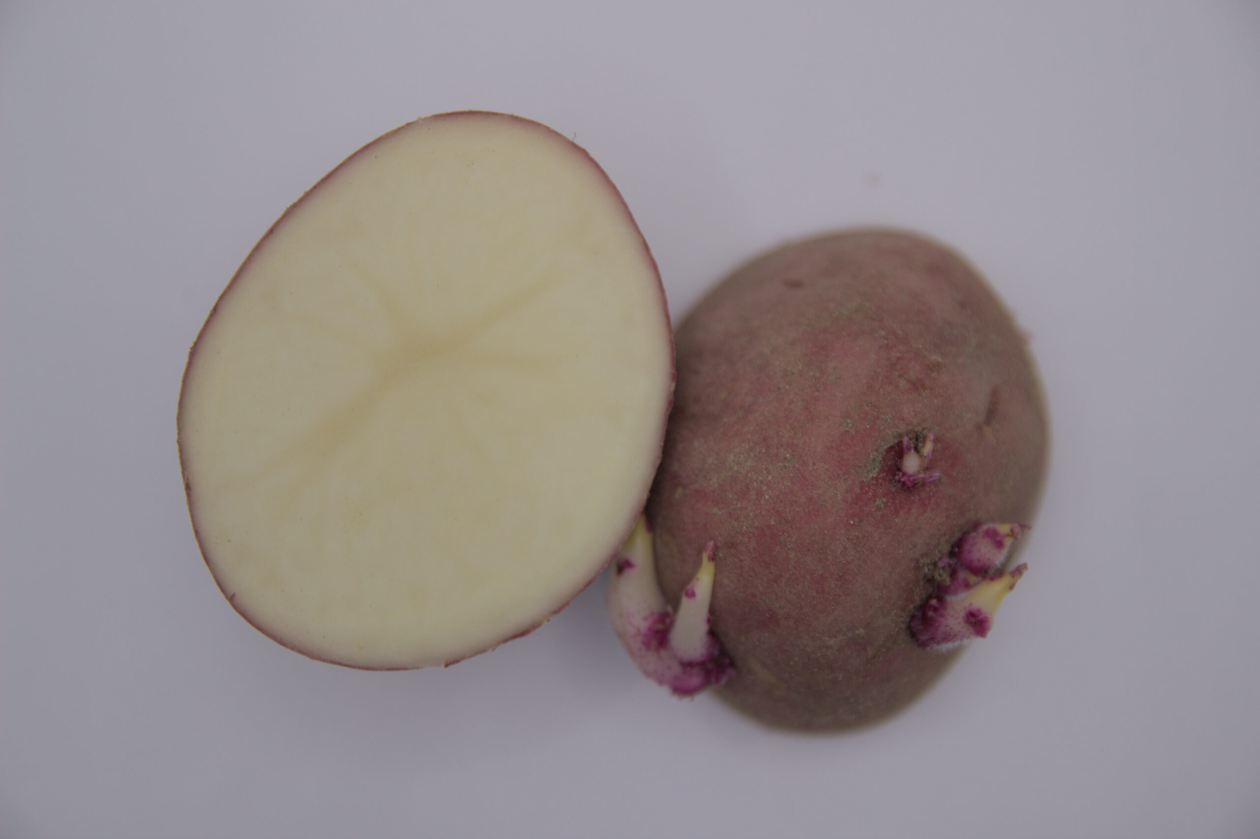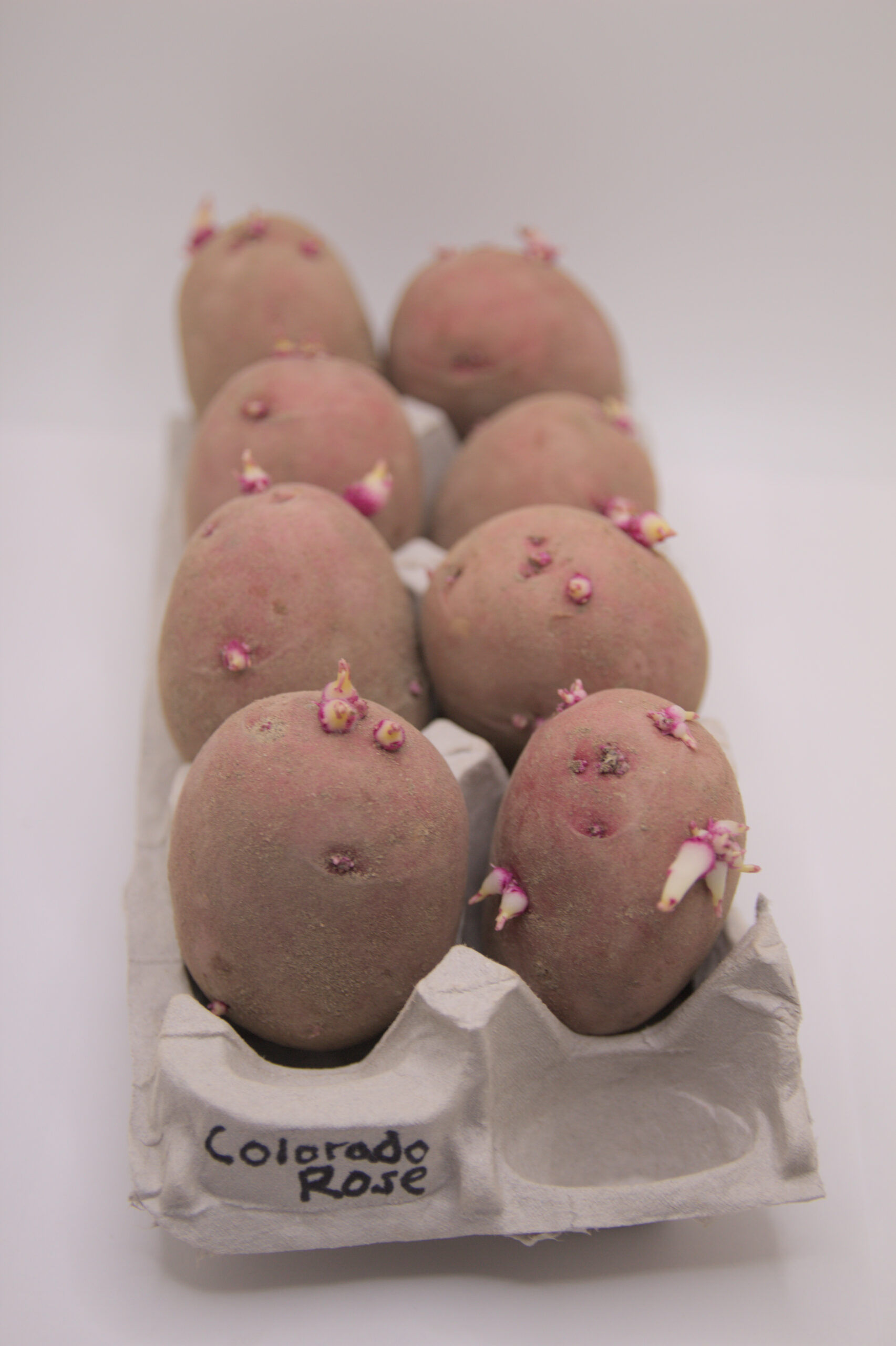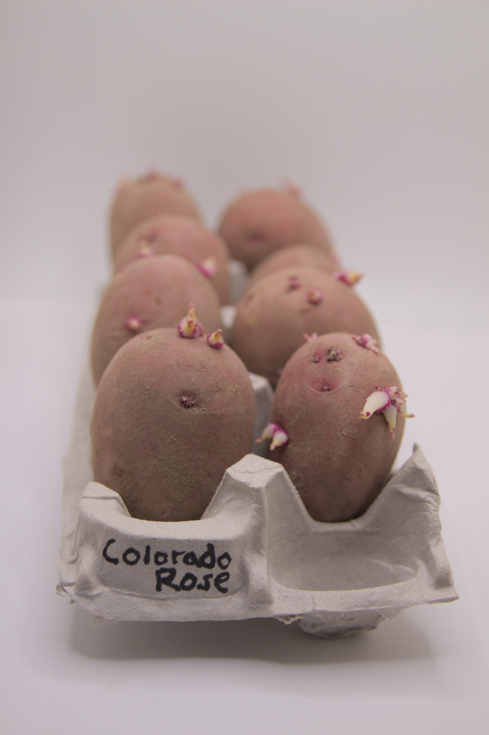 Colorado Rose is a red skinned tuber, with a white to light yellow flesh. It is a medium maturing, short dormancy tuber, that is more challenging to store. It was bred in Colorado in 1989 and released in 1996. It has a firm/waxy texture, which makes it ideal for boiling, roasting, baking, mashing, and steaming this spud.